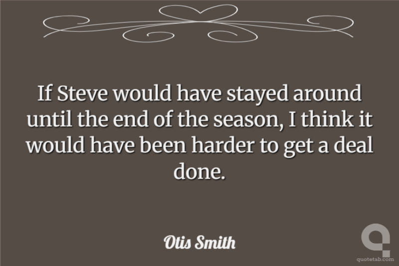 We have to get some things resolved. I'm sure the Titans want to keep Steve, and I'm sure they will. Steve wants to stay, and we want to keep him in Tennessee. Bus Cook