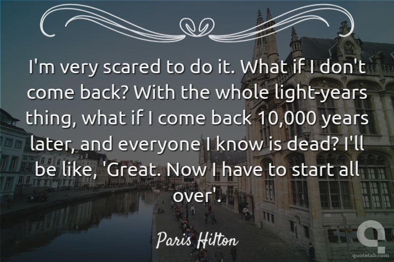 I'm very scared to do it. What if I don't come back? With the whole light-years thing, what if I come back 10,000 years later, and everyone I know is dead? I'll be like, 'Great. Now I have to start all over'. Paris Hilton