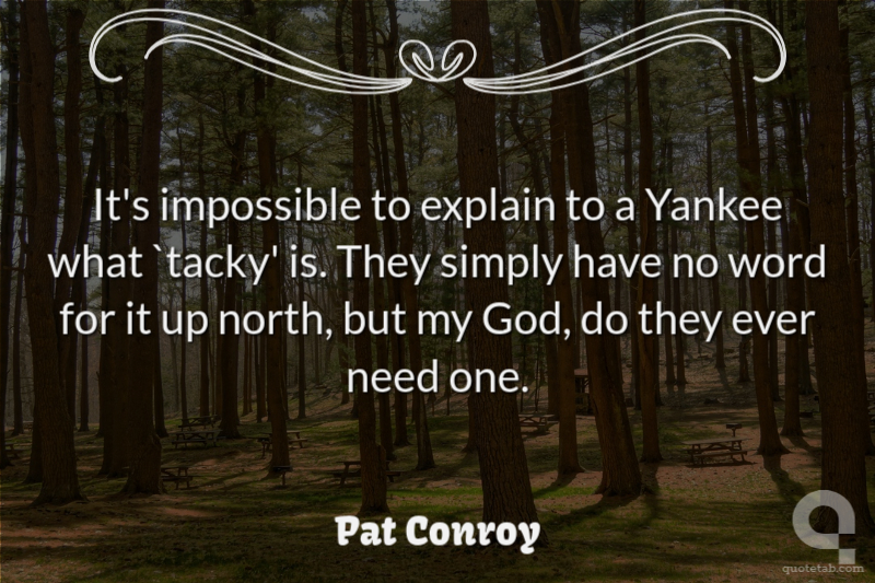 It's impossible to explain to a Yankee what `tacky' is. They simply have no word for it up north, but my God, do they ever need one. Pat Conroy
