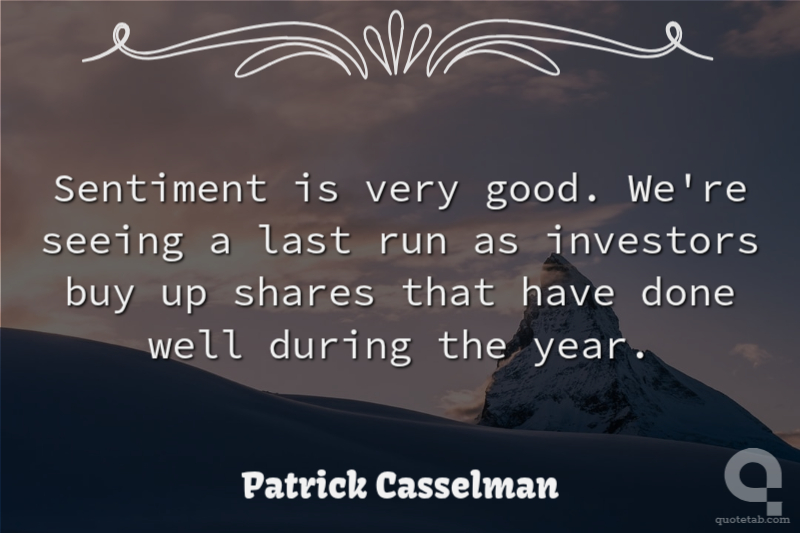 Most people want stocks to go up all the time. We're back to normal and people don't like it, ... Investors that don't have the patience to ride through trading ranges won't be able to participate in the surge. Craig Callahan