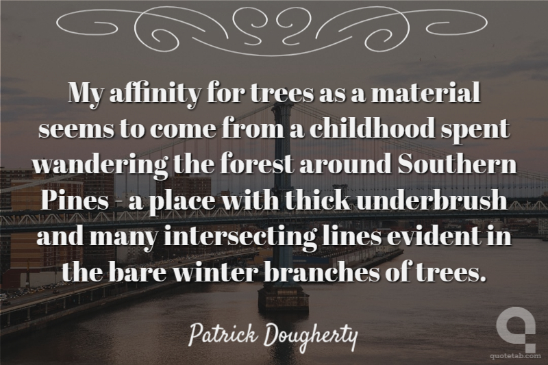 My affinity for trees as a material seems to come from a childhood spent wandering the forest around Southern Pines - a place with thick underbrush and many intersecting lines evident in the bare winter branches of trees. Patrick Dougherty