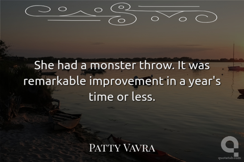 She had a monster throw. It was remarkable improvement in a year's time or less. Patty Vavra