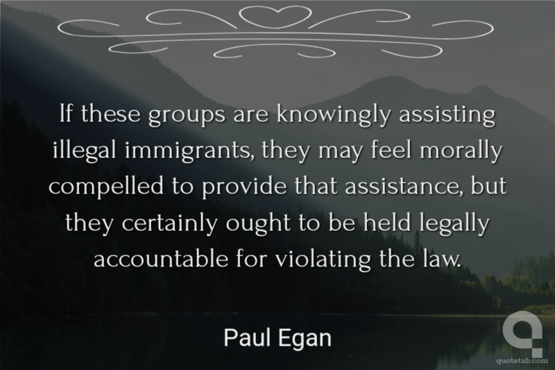 If these groups are knowingly assisting illegal immigrants, they may feel morally compelled to provide that assistance, but they certainly ought to be held legally accountable for violating the law. Paul Egan