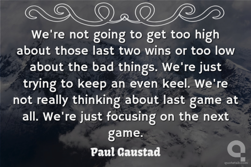 We're focusing on ourselves -- our plays, not their plays. Emily Cochran