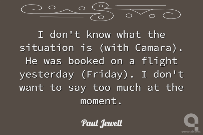 I don't know what the situation is (with Camara). He was booked on a flight yesterday (Friday). I don't want to say too much at the moment. Paul Jewell