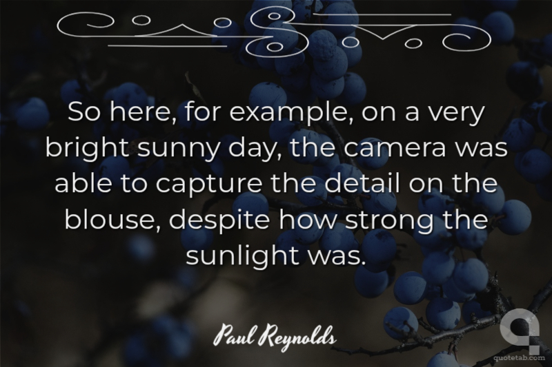 So here, for example, on a very bright sunny day, the camera was able to capture the detail on the blouse, despite how strong the sunlight was. Paul Reynolds