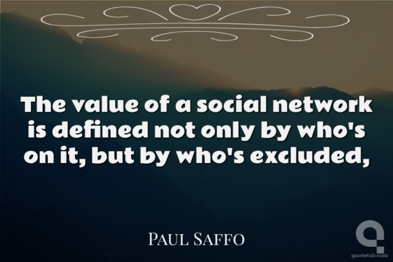 The value of a social network is defined not only by who's on it, but by who's excluded, Paul Saffo