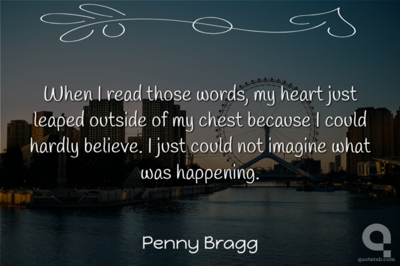 When I read those words, my heart just leaped outside of my chest because I could hardly believe. I just could not imagine what was happening. Penny Bragg