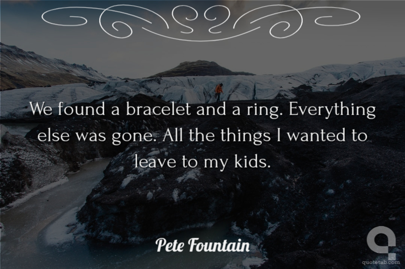 We found a bracelet and a ring. Everything else was gone. All the things I wanted to leave to my kids. Pete Fountain