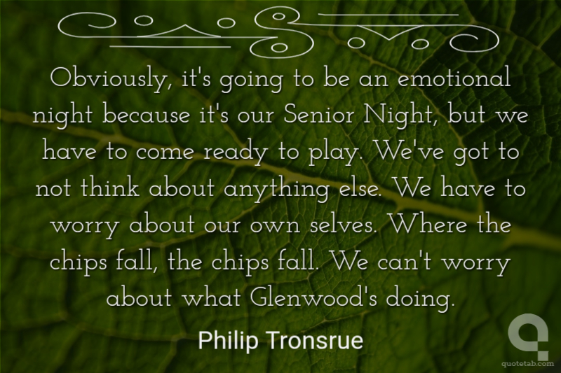 Obviously, it's going to be an emotional night because it's our Senior Night, but we have to come ready to play. We've got to not think about anything else. We have to worry about our own selves. Where the chips fall, the chips fall. We can't worry about what Glenwood's doing. Philip Tronsrue