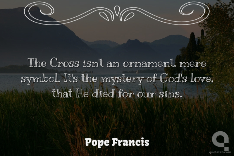 The Cross isn't an ornament, mere symbol. It's the mystery of God's love, that He died for our sins. Pope Francis