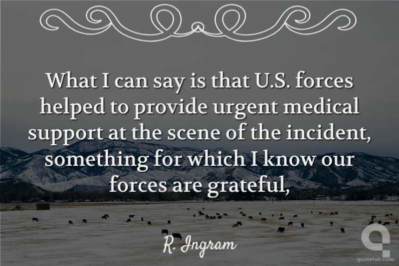 What I can say is that U.S. forces helped to provide urgent medical support at the scene of the incident, something for which I know our forces are grateful, R. Ingram