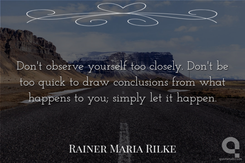 Don't observe yourself too closely. Don't be too quick to draw conclusions from what happens to you; simply let it happen. Rainer Maria Rilke