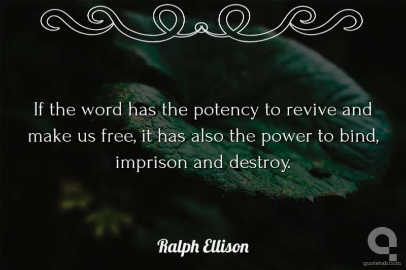 If the word has the potency to revive and make us free, it has also the power to bind, imprison and destroy. Ralph Ellison