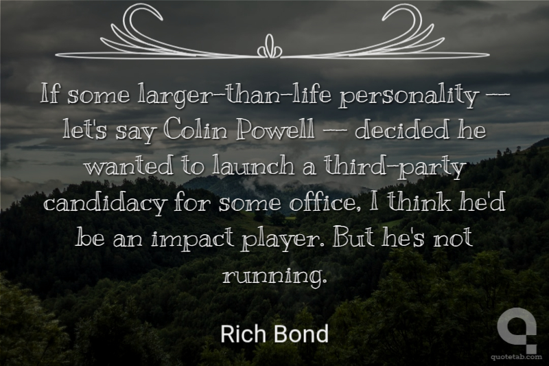 If some larger-than-life personality -- let's say Colin Powell -- decided he wanted to launch a third-party candidacy for some office, I think he'd be an impact player. But he's not running. Rich Bond