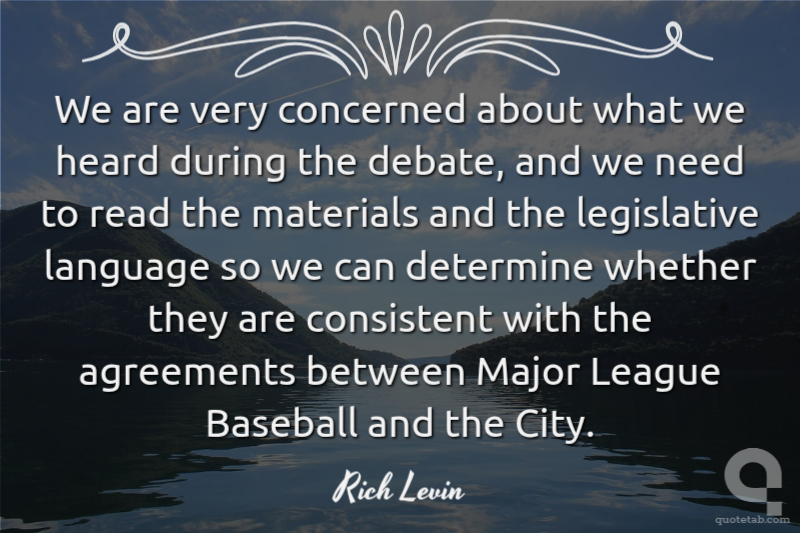 Major League Baseball has not yet been provided with the filings made by the D.C. Sports & Entertainment Commission with the City Council last Friday, nor the text of the legislation passed by the Council last night. We are very concerned about what we heard during the debate, and we need to read the materials and the legislative language so we can determine whether they are consistent with the agreements between Major League Baseball and the city. Rich Levin