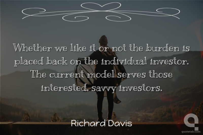 Whether we like it or not the burden is placed back on the individual investor. The current model serves those interested, savvy investors. Richard Davis