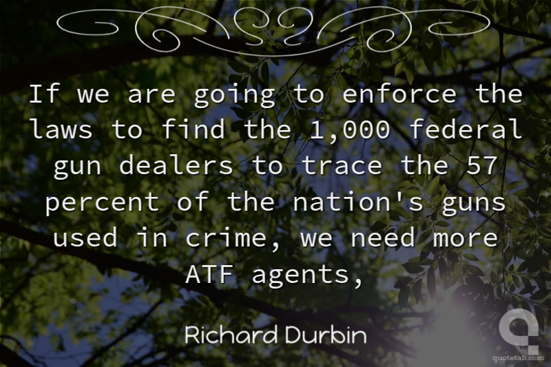 If we are going to enforce the laws to find the 1,000 federal gun dealers to trace the 57 percent of the nation's guns used in crime, we need more ATF agents, Richard Durbin