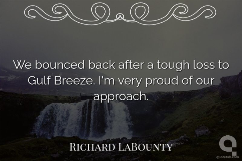 We bounced back after a tough loss to Gulf Breeze. I'm very proud of our approach. Richard LaBounty