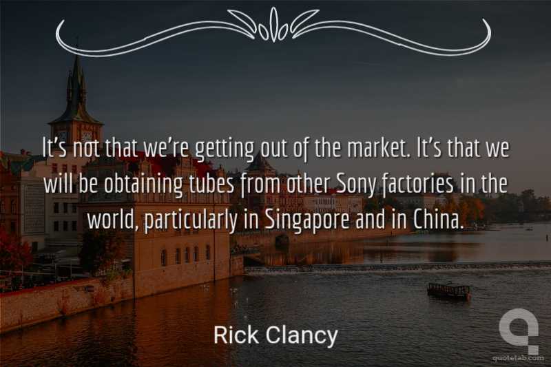 It's not that we're getting out of the market. It's that we will be obtaining tubes from other Sony factories in the world, particularly in Singapore and in China. Rick Clancy