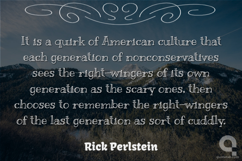 It is a quirk of American culture that each generation of nonconservatives sees the right-wingers of its own generation as the scary ones, then chooses to remember the right-wingers of the last generation as sort of cuddly. Rick Perlstein