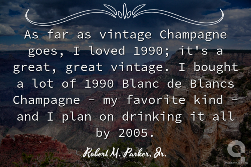 As far as vintage Champagne goes, I loved 1990; it's a great, great vintage. I bought a lot of 1990 Blanc de Blancs Champagne - my favorite kind - and I plan on drinking it all by 2005. Robert M. Parker, Jr.