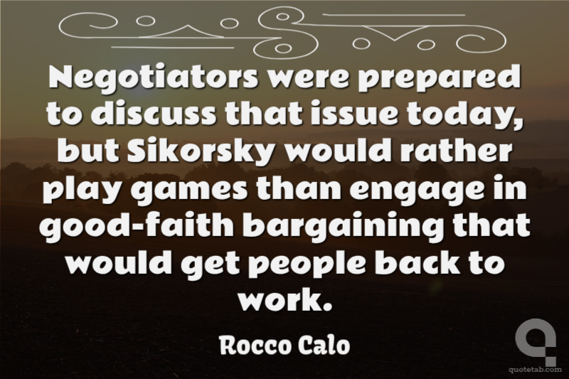 Negotiators were prepared to discuss that issue today, but Sikorsky would rather play games than engage in good-faith bargaining that would get people back to work. Rocco Calo