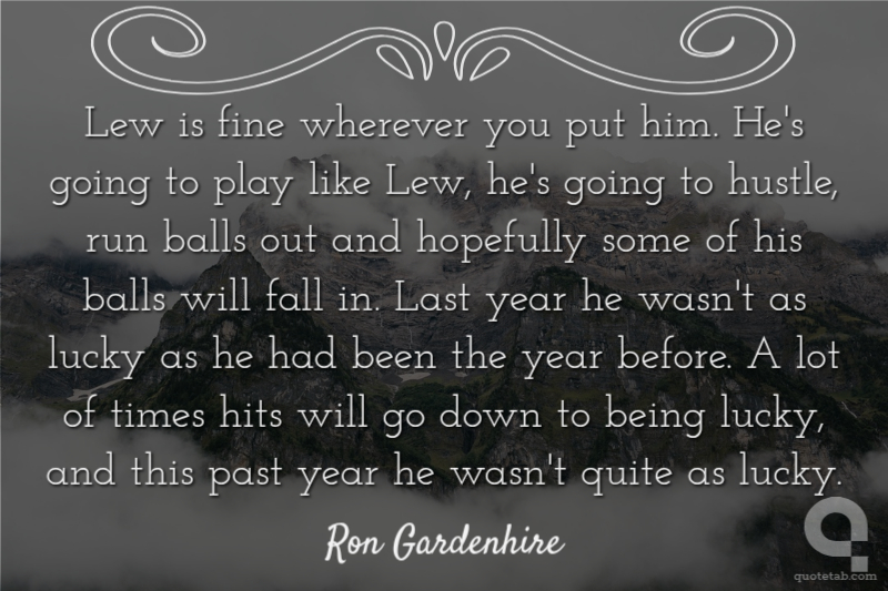 Lew is fine wherever you put him. He's going to play like Lew, he's going to hustle, run balls out and hopefully some of his balls will fall in. Last year he wasn't as lucky as he had been the year before. A lot of times hits will go down to being lucky, and this past year he wasn't quite as lucky. Ron Gardenhire