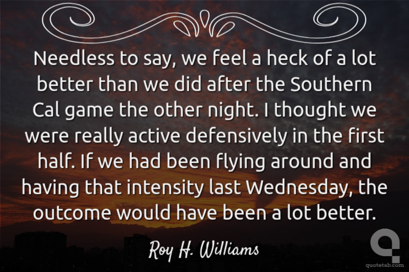 Let's be honest, we made shots. When you make shots, the whole game looks prettier. Roy Williams