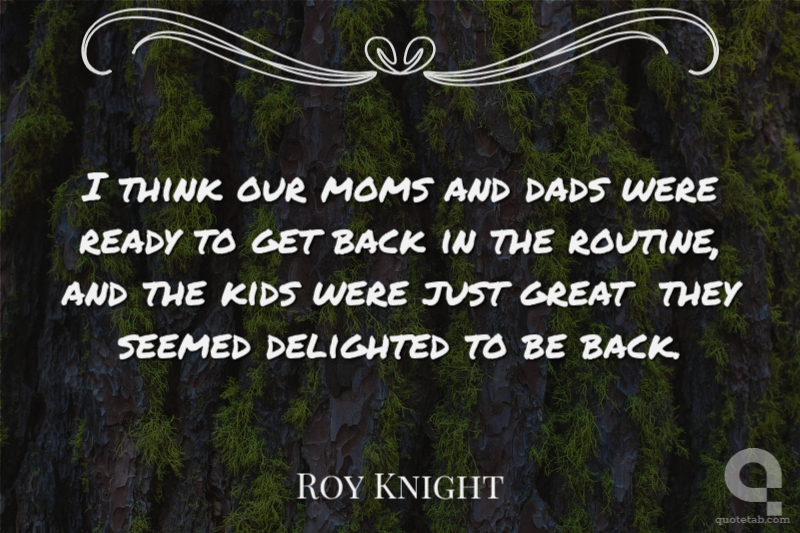 I think our moms and dads were ready to get back in the routine, and the kids were just great they seemed delighted to be back. Roy Knight
