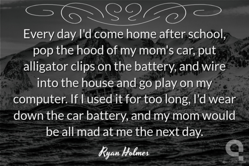 Every day I'd come home after school, pop the hood of my mom's car, put alligator clips on the battery, and wire into the house and go play on my computer. If I used it for too long, I'd wear down the car battery, and my mom would be all mad at me the next day. Ryan Holmes
