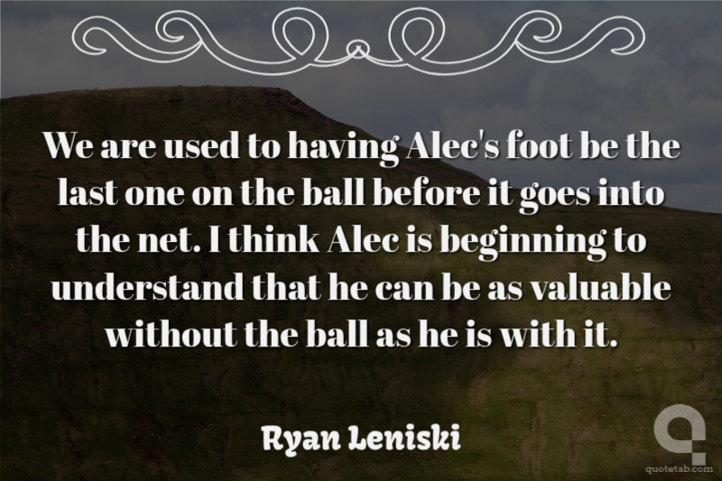 We are used to having Alec's foot be the last one on the ball before it goes into the net. I think Alec is beginning to understand that he can be as valuable without the ball as he is with it. Ryan Leniski