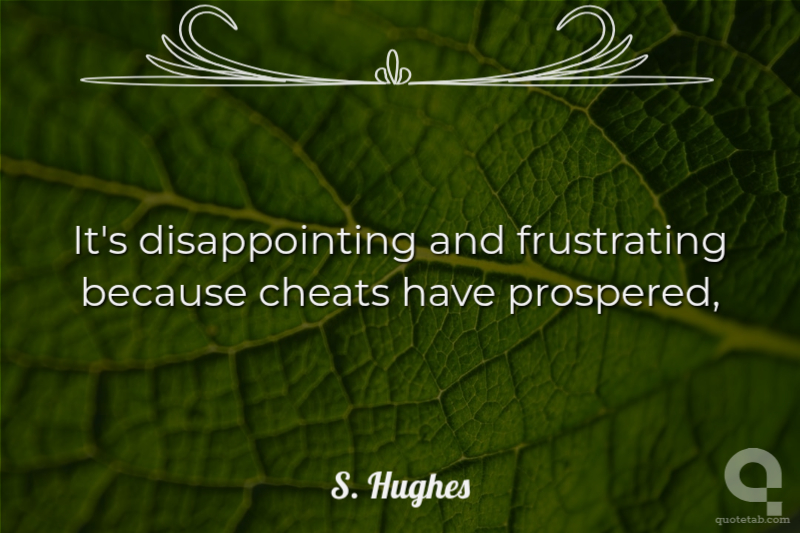 It's disappointing and frustrating because cheats have prospered, S. Hughes