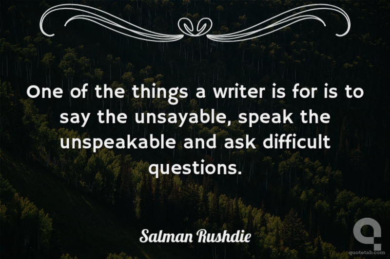 One of the things a writer is for is to say the unsayable, speak the unspeakable and ask difficult questions. Salman Rushdie