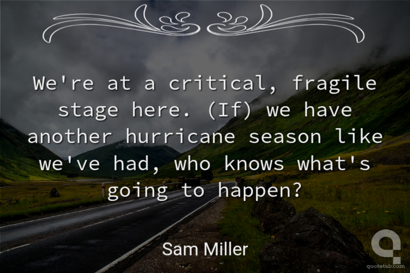 We're at a critical, fragile stage here. (If) we have another hurricane season like we've had, who knows what's going to happen? Sam Miller