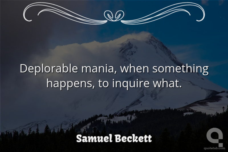 Deplorable mania, when something happens, to inquire what. Samuel Beckett