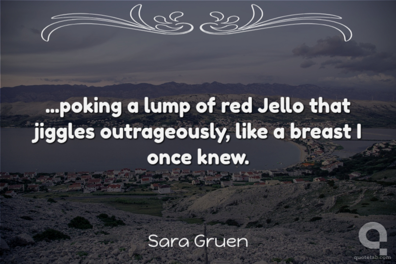 ...poking a lump of red Jello that jiggles outrageously, like a breast I once knew. Sara Gruen