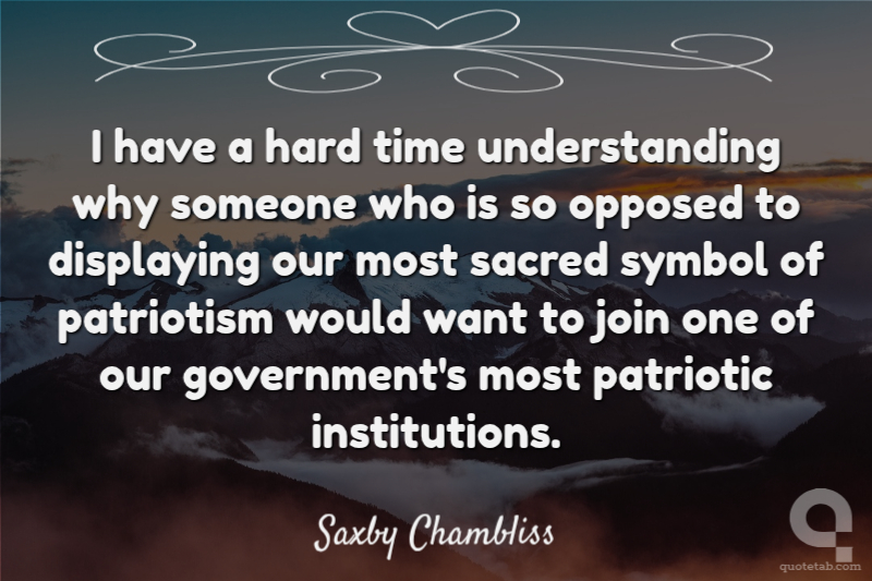 I have a hard time understanding why someone who is so opposed to displaying our most sacred symbol of patriotism would want to join one of our government's most patriotic institutions. Saxby Chambliss
