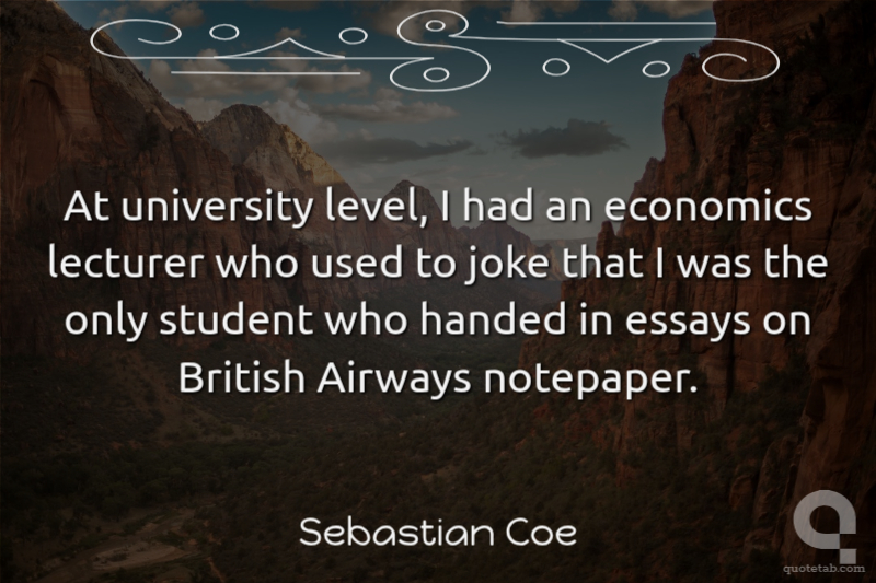 At university level, I had an economics lecturer who used to joke that I was the only student who handed in essays on British Airways notepaper. Sebastian Coe