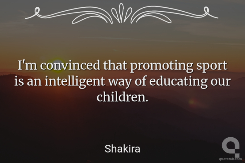 I'm convinced that promoting sport is an intelligent way of educating our children. Shakira