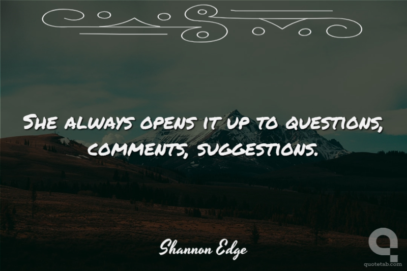 She always opens it up to questions, comments, suggestions. Shannon Edge