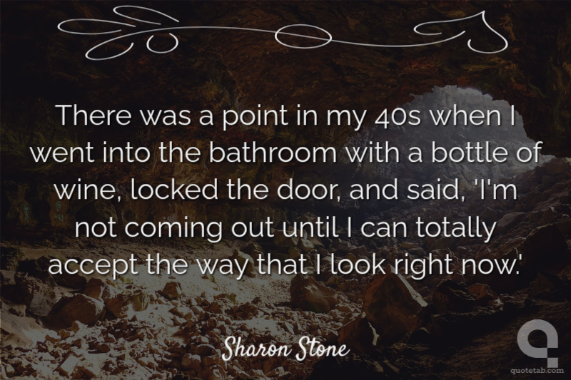 There was a point in my 40s when I went into the bathroom with a bottle of wine, locked the door, and said, 'I'm not coming out until I can totally accept the way that I look right now.' Sharon Stone