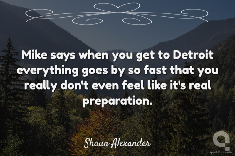 Mike says when you get to Detroit everything goes by so fast that you really don't even feel like it's real preparation. Shaun Alexander