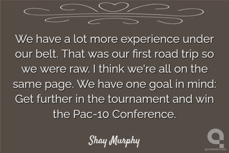 Were in the tournament now, and in the tournament anything can happen. Mike Conners