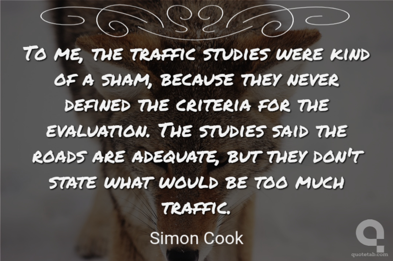 To me, the traffic studies were kind of a sham, because they never defined the criteria for the evaluation. The studies said the roads are adequate, but they don't state what would be too much traffic. Simon Cook