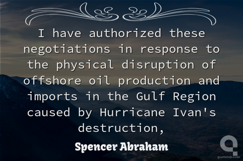I have authorized these negotiations in response to the physical disruption of offshore oil production and imports in the Gulf Region caused by Hurricane Ivan's destruction, Spencer Abraham