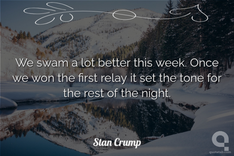 We swam a lot better this week. Once we won the first relay it set the tone for the rest of the night. Stan Crump