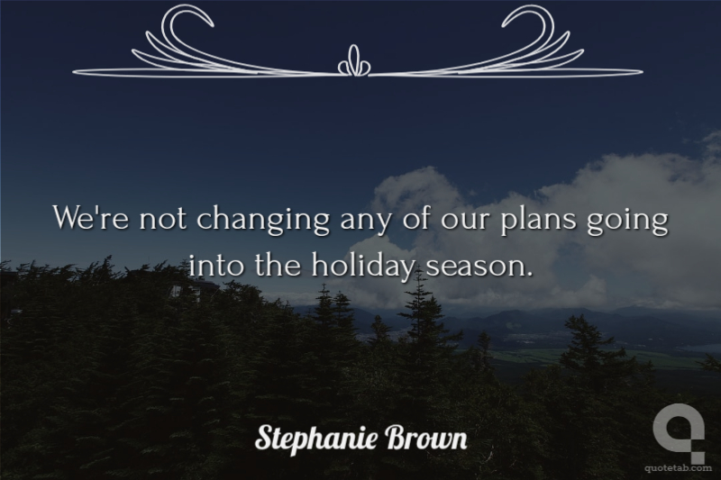 We're not changing any of our plans going into the holiday season. Stephanie Brown