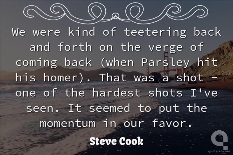 Momentum is only as good as tomorrow's starting pitcher. Earl Weaver