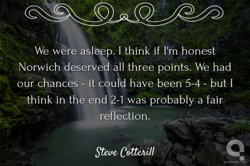 We were asleep. I think if I'm honest Norwich deserved all three points. We had our chances - it could have been 5-4 - but I think in the end 2-1 was probably a fair reflection. Steve Cotterill